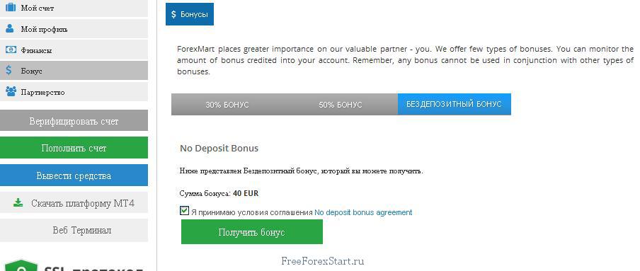 Today, I’d like to present you instructions on how to receive a big no-deposit bonus from the Spanish broker Forexmart. Forexmart is a trading brand of the company Tradomart LTD,