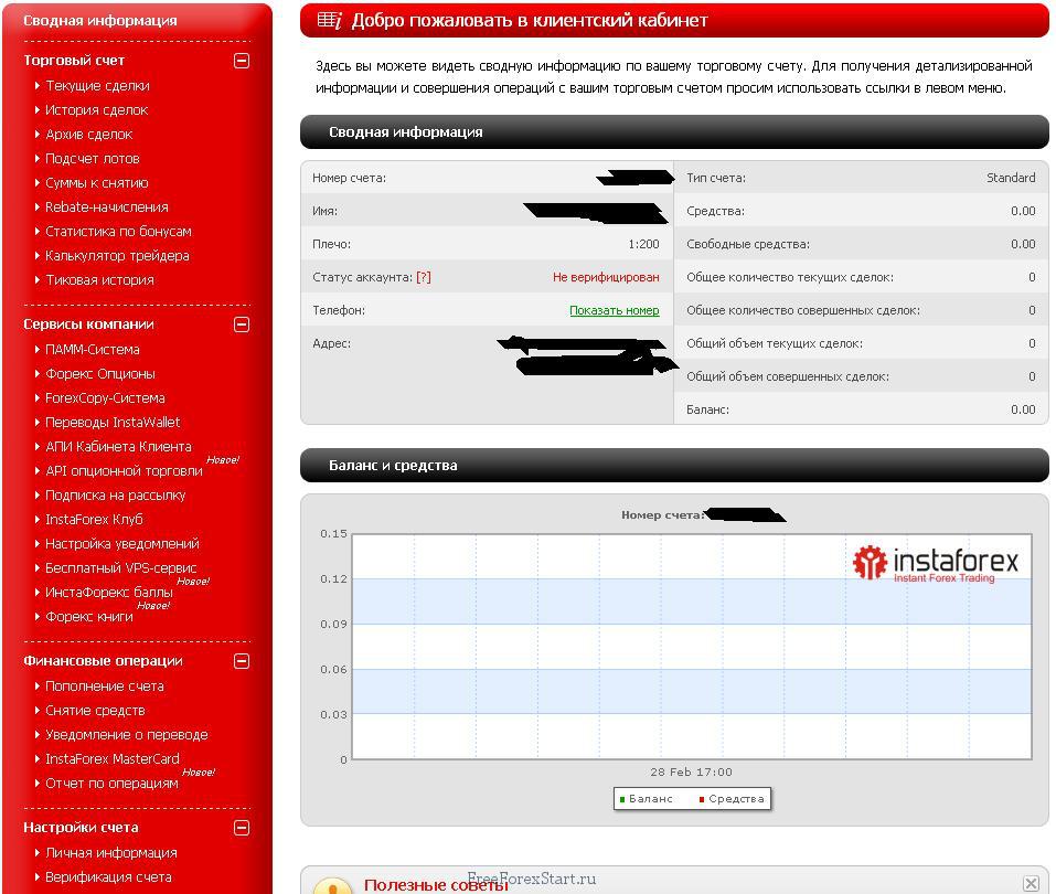 And login to the InstaForex Client Area, entering the trading account number as the login and the trader’s password for it. - This is what the InstaForex Client Areat looks like: