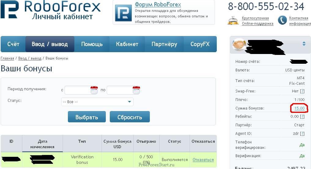 If you registered on the RoboForex official website before April 14, 2014, or if you activated an account earlier but would like to receive a no deposit forex bonus of 30 USD, then write a request to the broker’s support team through your account on the website.