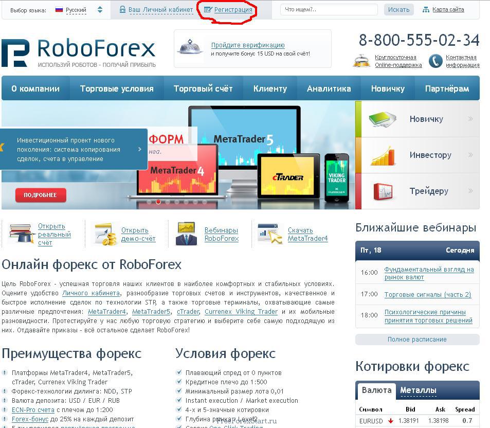 - First of all, you need to register on the website and open a RoboForex trading account. Click on the banner to go to the broker’s official website: