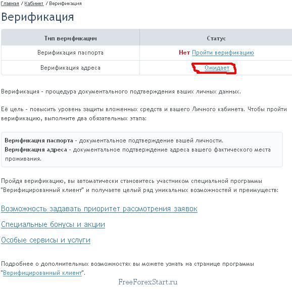 When the verification request is submitted, another status will appear on the verification page of the RoboForex website.