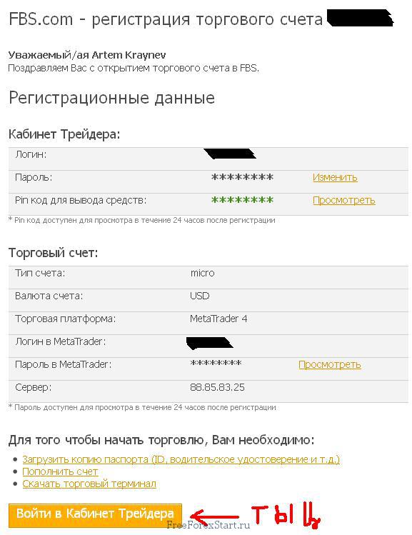 After clicking the button, the account will be opened. Check your mailbox, there should be an email with all the data from your FBS trading account: